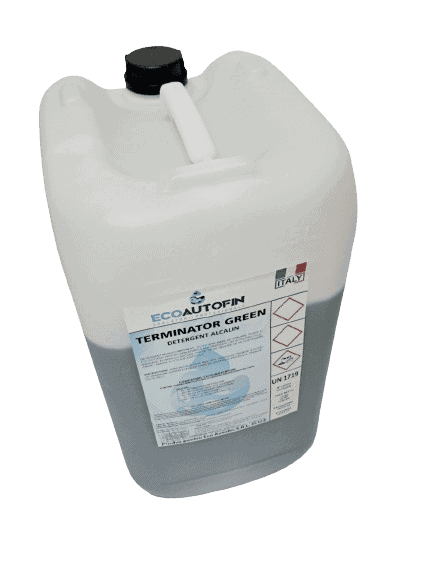 Detergentul superconcentrat spumant (exemplu: formulă tip TERMINATOR), potrivit pentru murdărie extremă, depuneri compacte și lucrul fără perii.